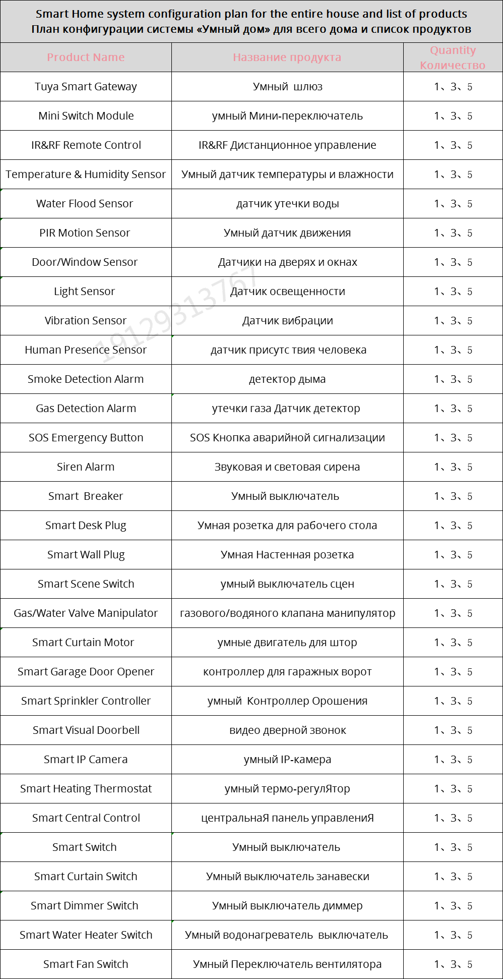 Smart Home system configuration plan for the entire house and list of products