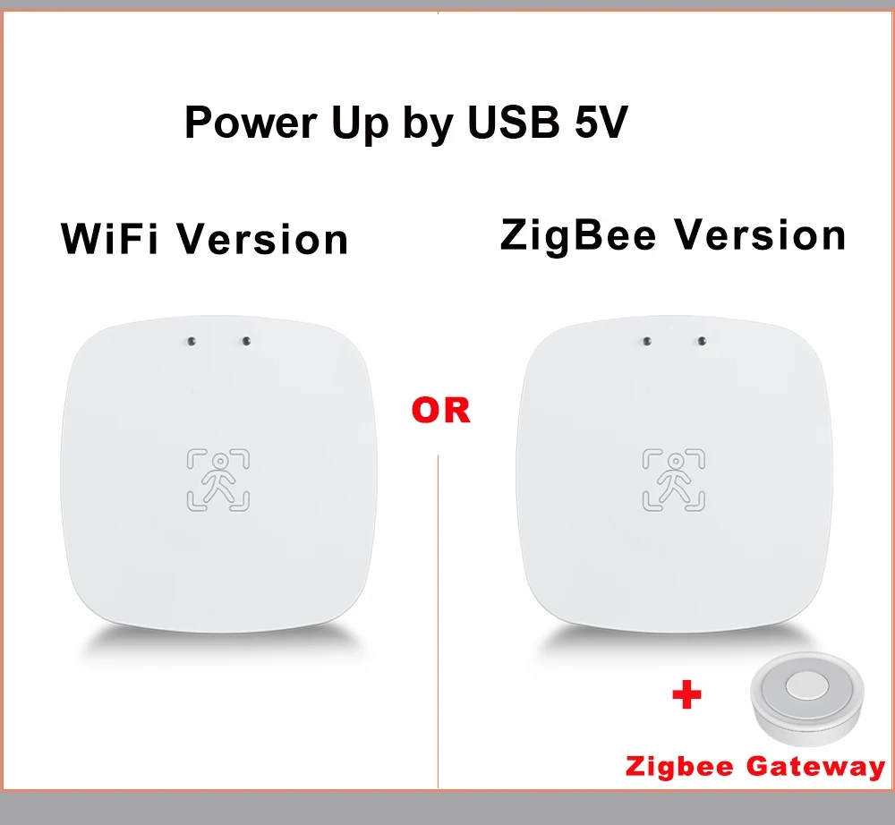 Wall mount version have wifi and zigbee ,it is power by USB 5V