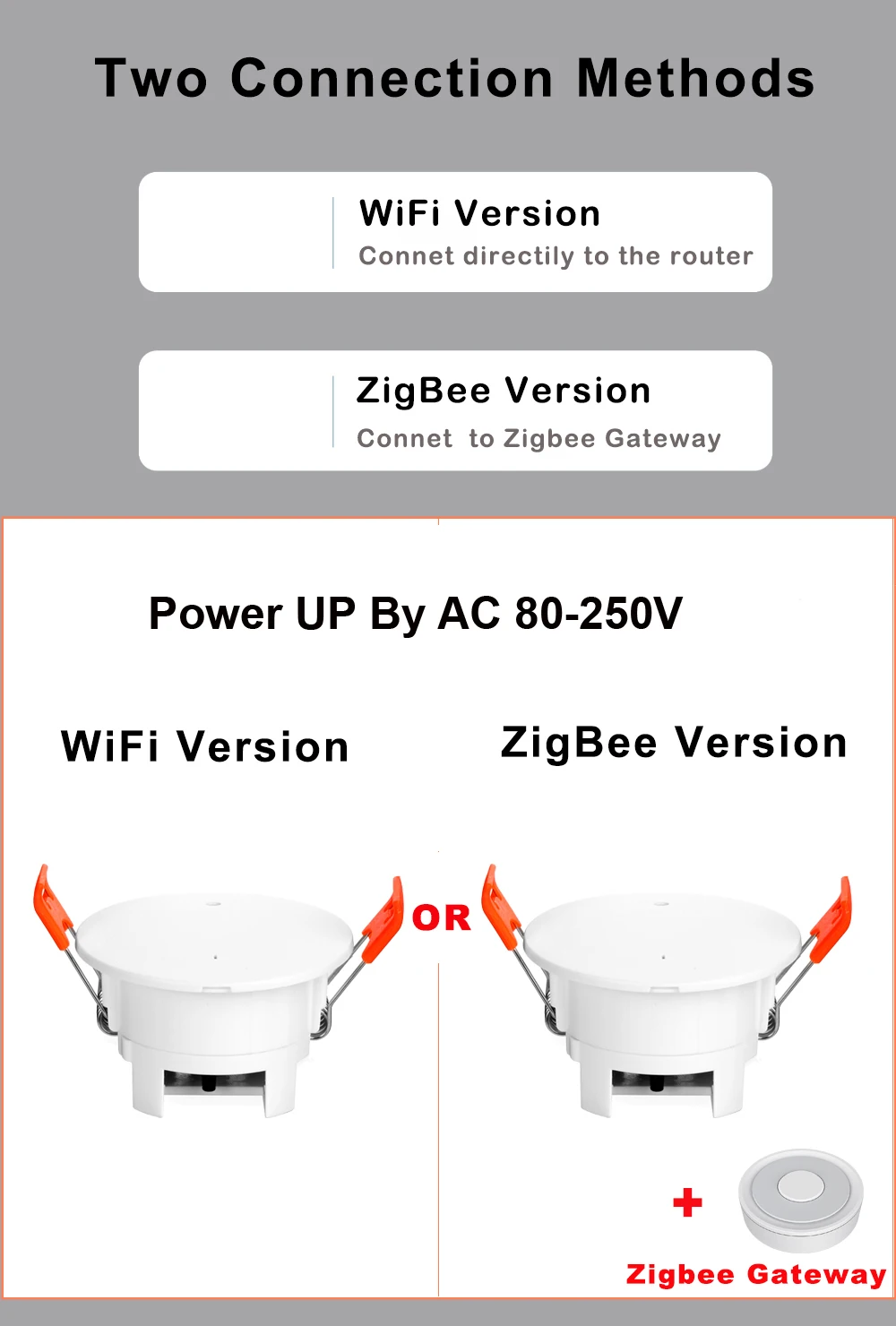 Ceiling mount version have wifi and zigbee,it is power by AC 80-220V