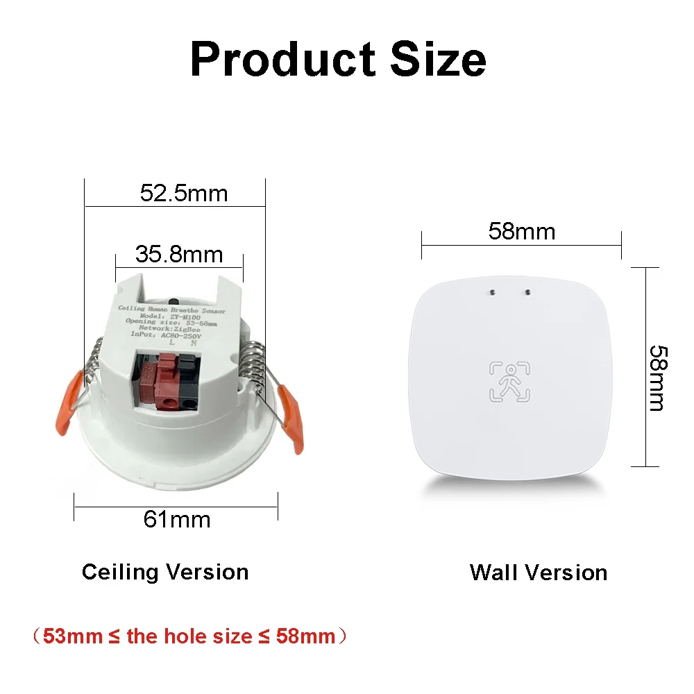 Smart Human Presence Detector:the human presence sensor adopts millimeter wave radar,sensing human movement and static presence.It can detect the tiniest movement,even breathing and heatbeat.