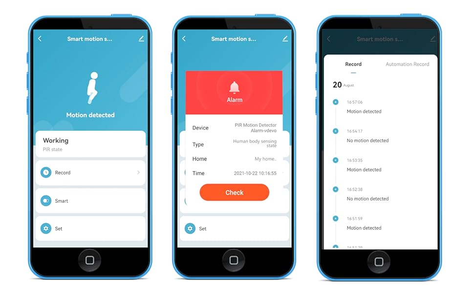 ●You will receive real-time alarm notification from mobile app                                         ● Link with Tuya Smart switch, the light will turn on automatically