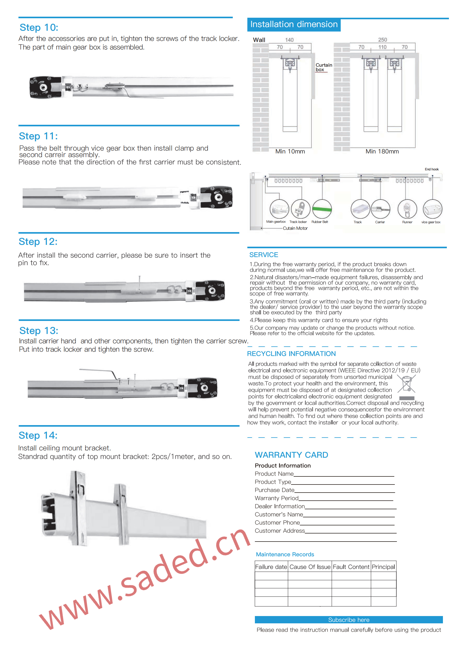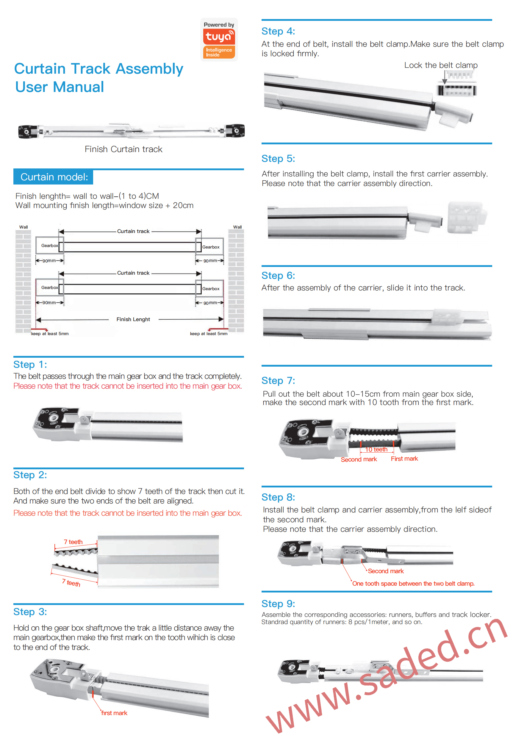 1*One set of completed Curtain track (included aluminum track, runners, belt ,drive box, ceiling mount brackets,etc.)